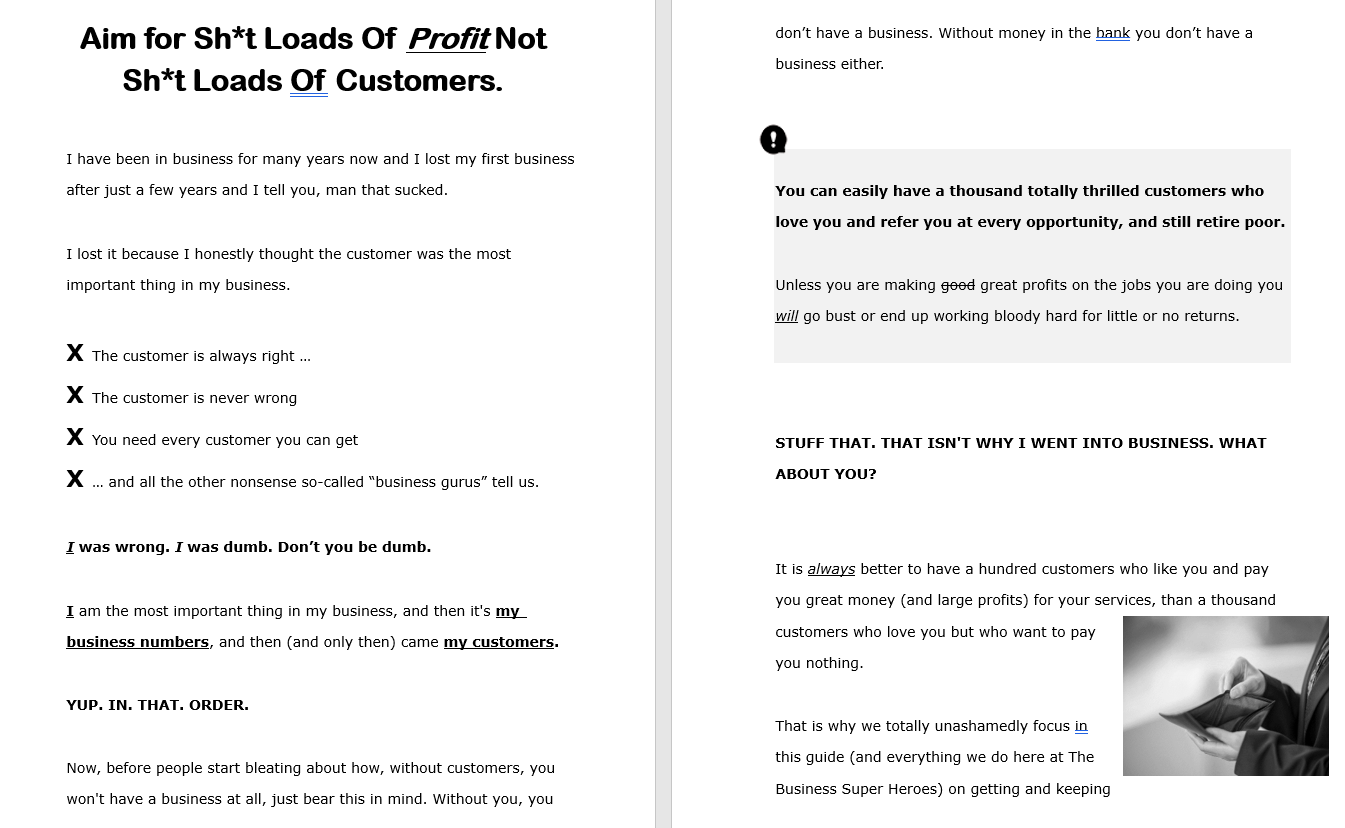 This course has been developed with our usual “no messing about” approach to business and it contains no fluff, no timid, floppy “hints” and no BS.
